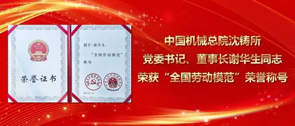 4月28日,全國勞動模范和先進(jìn)工作者表彰大會在北京人民大會堂召開,中國機(jī)械總院集團(tuán)沈陽鑄造研究所有限公司黨委書記、董事長謝華生榮獲“全國勞動模范”榮譽(yù)稱號。